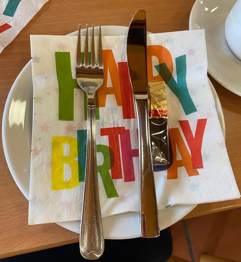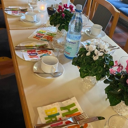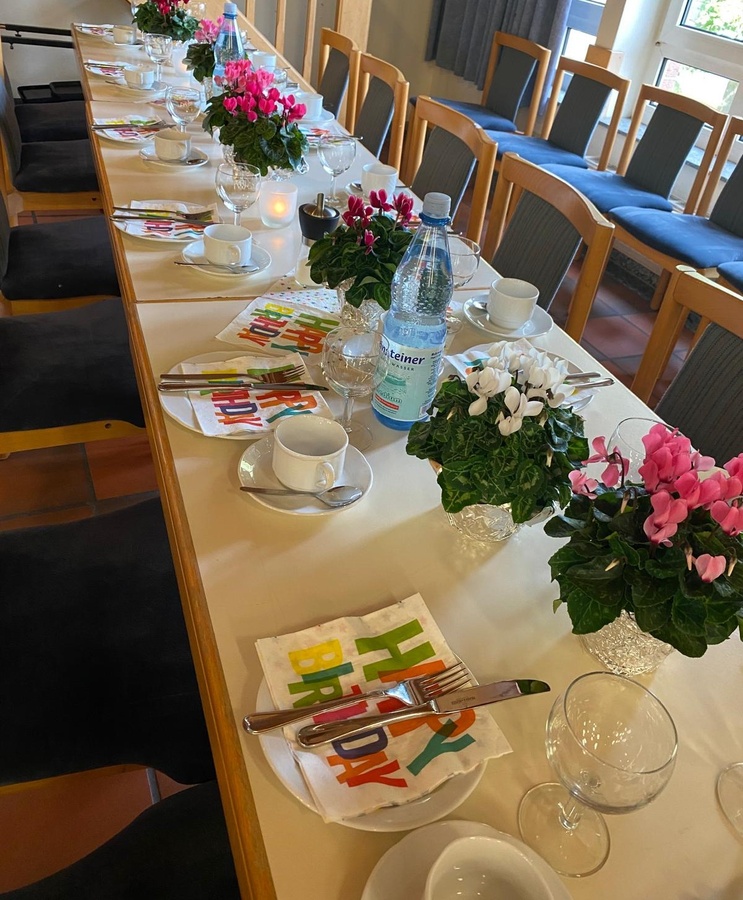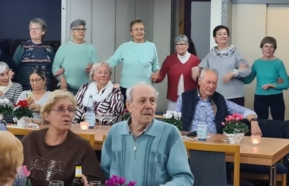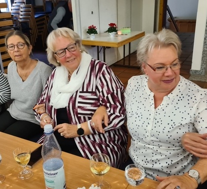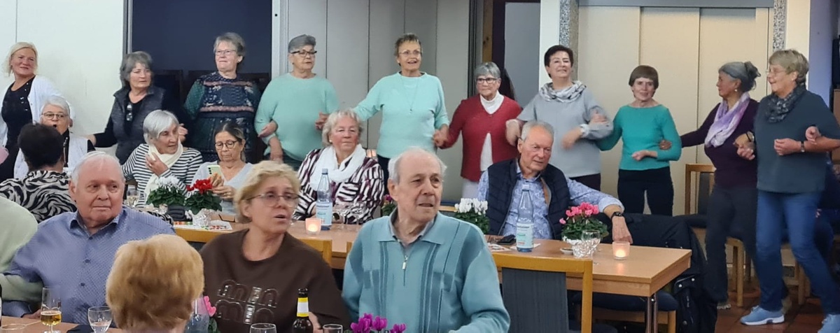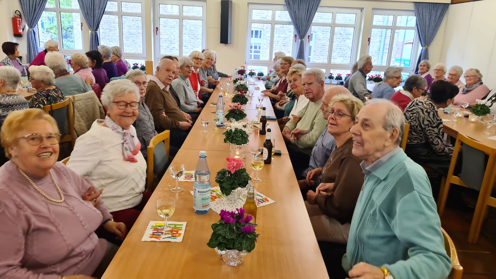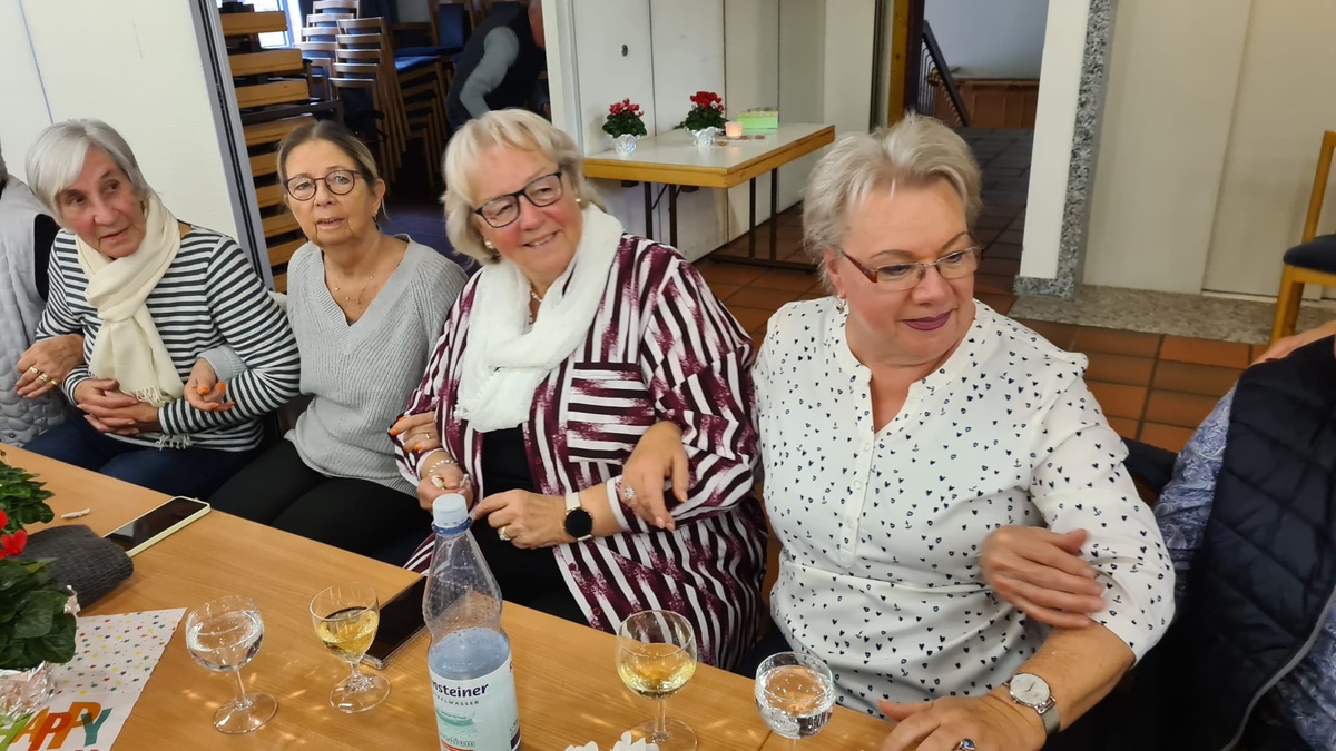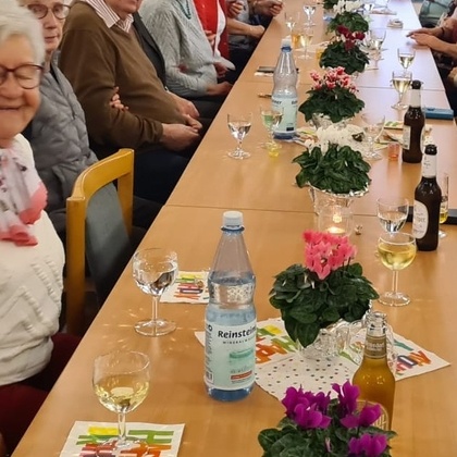 Einmal im Jahr feiern wir symbolisch den Geburtstag unserer Seniorinnen und Senioren - bei Zwiebelkuchen, Weißwein (Federweißen gab’s nicht mehr) und steigender Stimmung. Ob es zwischen Wein und wachsender Partylaune einen Zusammenhang gibt, wissen wir nicht. Wollen wir auch nicht wissen. Natürlich durften alle wieder ihr Alpenveilchen mit nachhause nehmen - eine lieb gewonnene Tradition.
