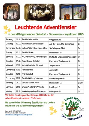 29.11.2025 Leuchtende Adventfenster in den Mittelgemeinden