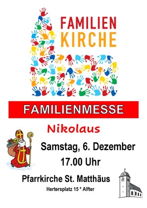 Herzliche Einladung zur Familienmesse am Samstag, 06. Dezember um 17:00 Uhr in St. Matthäus rund um den Heiligen Nikolaus. Wir freuen uns auf alle, die Mitfeiern!