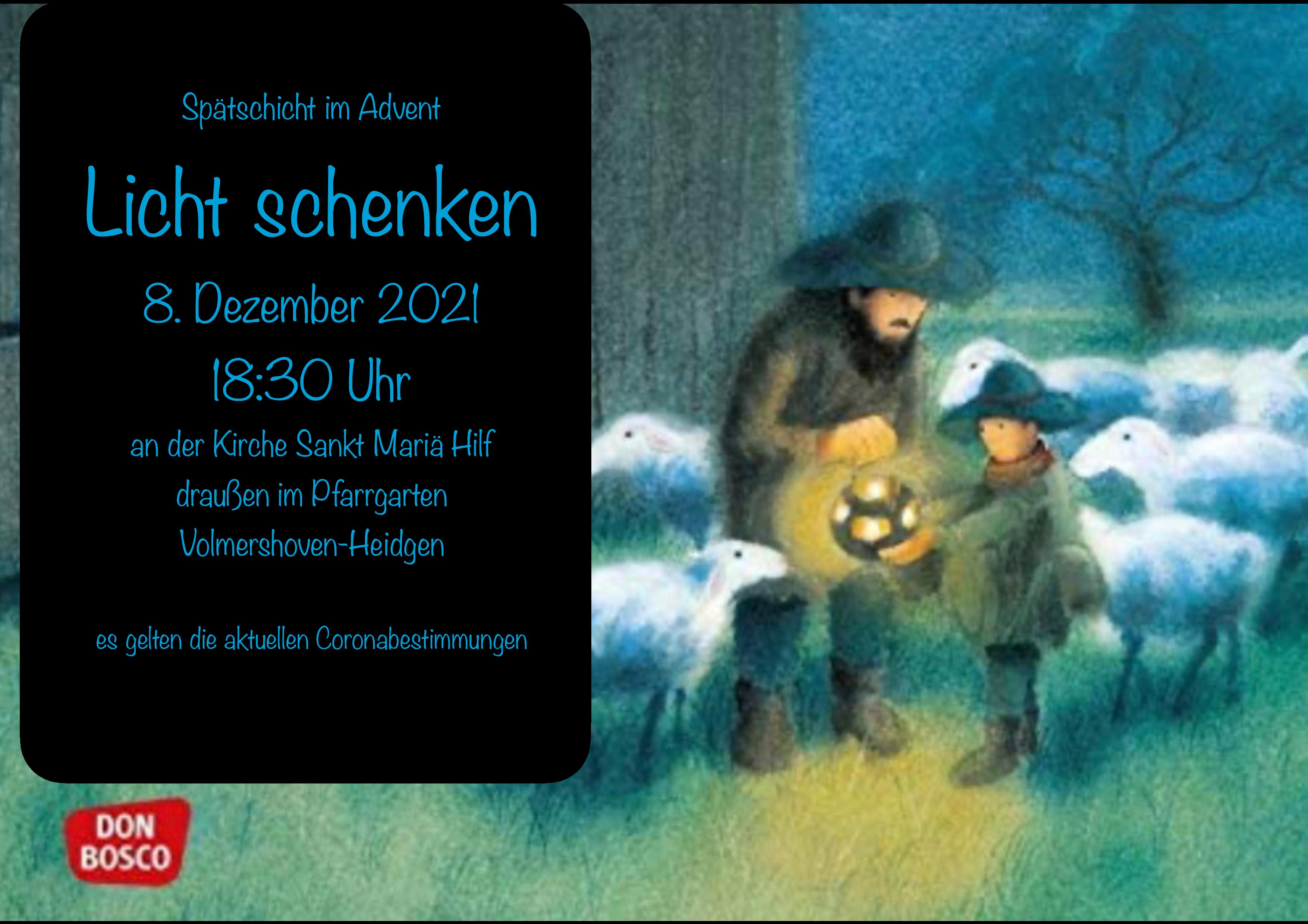 Herzliche Einladung zur Spätschicht im Advent im Pfarrgarten von St. Mariä Hilf in Volmershoven, Kottenforststr. 10 – in diesem Jahr draußen. Bitte denkt an warme Kleidung!