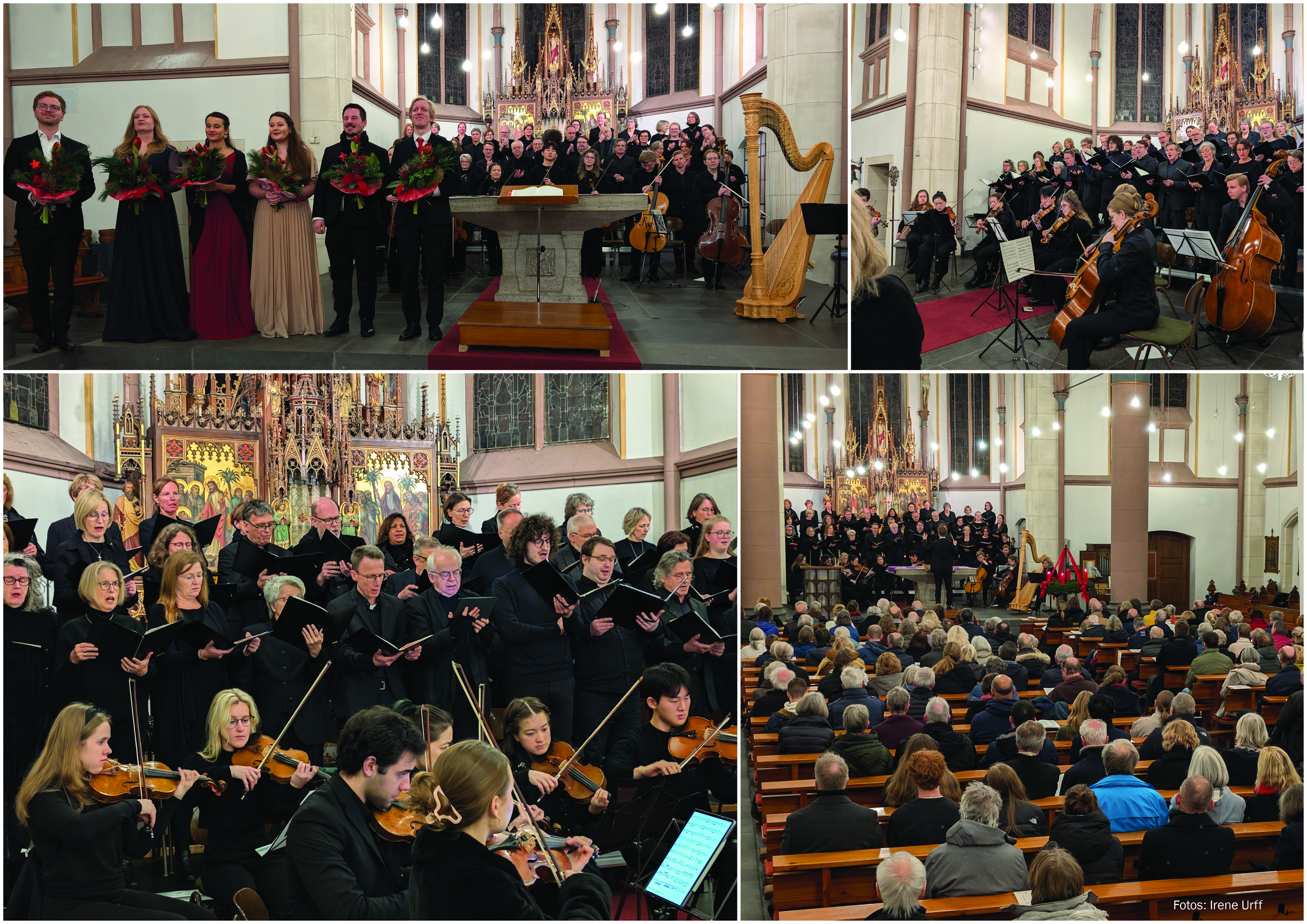 Die Solisten Andrea Graff (Sopran), Sandra Gerlach (Alt), Leon Noel Wepner (Tenor) und Joel Urch (Bass) begeisterten das Publikum mit ihren eindrucksvollen Stimmen im Solo, Duett, Terzett und abwechselnd mit dem Chor. Dass es dem Komponisten um ein ernstes Bekenntnis ging wurde unter anderem im „Agnus Dei“ deutlich, in dem sich Chor und Altistin beim immer wieder vertonten „Dona nobis pacem – Gib uns Frieden“ abwechselten. Das gemeinsam gesungene Sanctus war durch Ruhe und Schlichtheit eine der schönsten Stellen der Aufführung.